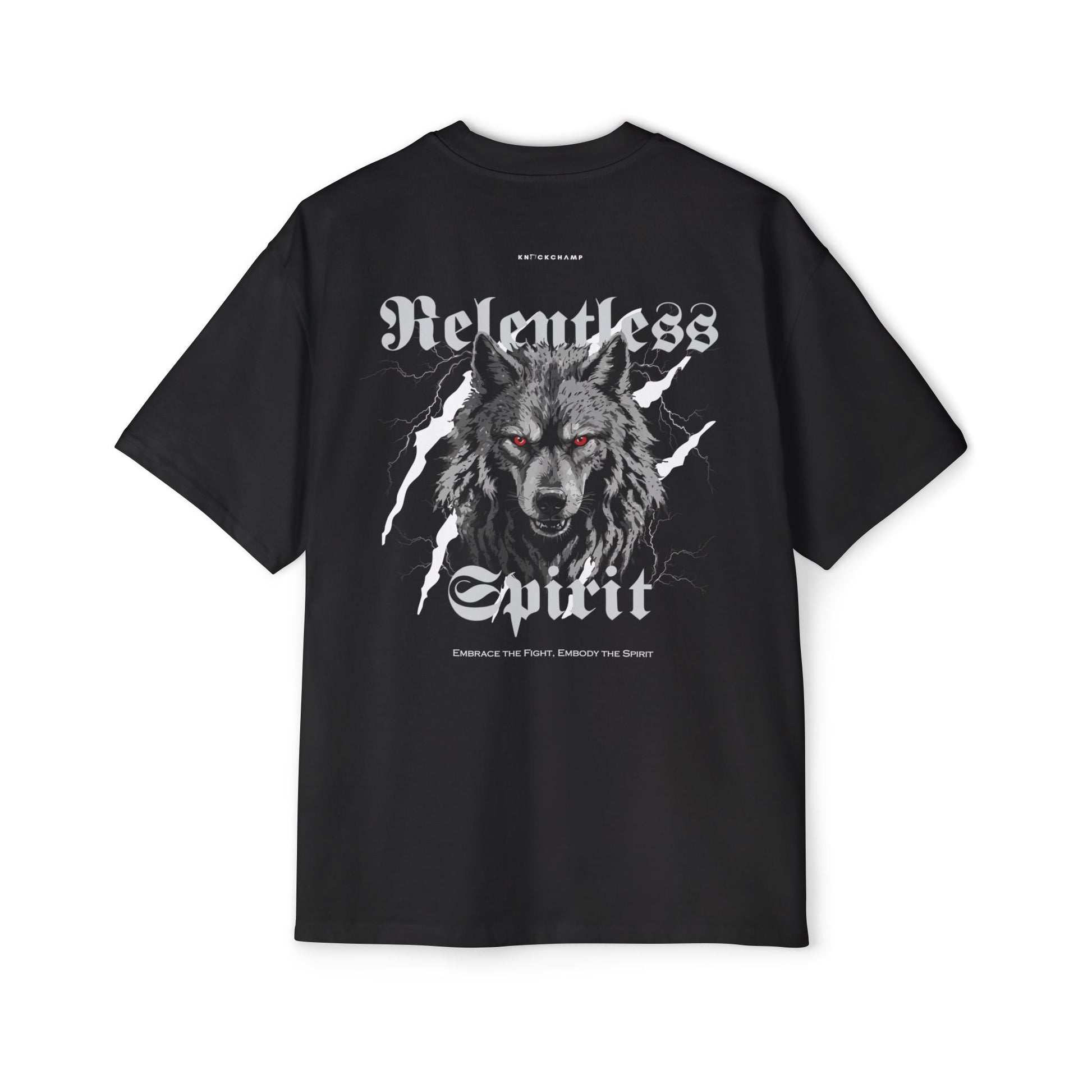 Some wear their heart on their sleeve. We wear our spirit on our back.This isn't just another oversized tee. This is your armor for the world outside the gym. The "Relentless Spirit" design is a bold statement to everyone who sees it, a declaration of the warrior's mindset that drives you. The wolf on your back isn't just ink; it's a symbol of the focus, ferocity, and unbreakable will that defines every true combatant.